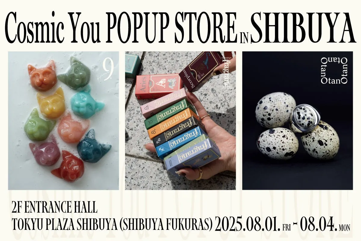 2025年8月1日(金)から4日(月)まで、東急プラザ渋谷にてI fragrance、9.kyuu、OtanOの三つのブランドによるポップアップイベント「Cosmic You POPUP STORE」が開催されます。このイベントは「あなたの宇宙に出会う」というテーマのもと、各ブランドがそれぞれの魅力を引き出した特別な体験を提供します。