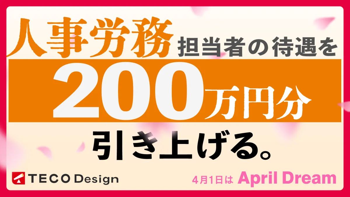 株式会社TECO Designは、全国の人事労務担当者が抱える課題を解決し、彼らの待遇を200万円引き上げることを目指して、4月1日に「April Dream」に賛同しました。この取り組みは、人事労務のクリエイティブな価値を再発見し、彼らを支える構造を根本から変革することにあります。