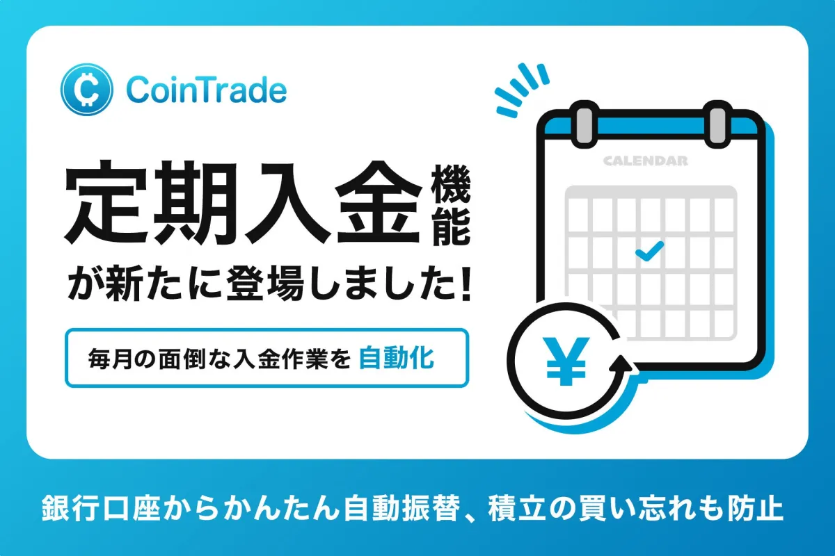 新しく導入される定期入金サービスでは、ユーザーは一度銀行口座を登録することで、指定した日時に自動的に決められた金額がCoinTradeの口座に振り込まれる仕組みが整いました。これにより、ユーザーは従来のように手動で振込を行う必要がなくなり、資産の管理が一層便利になります。