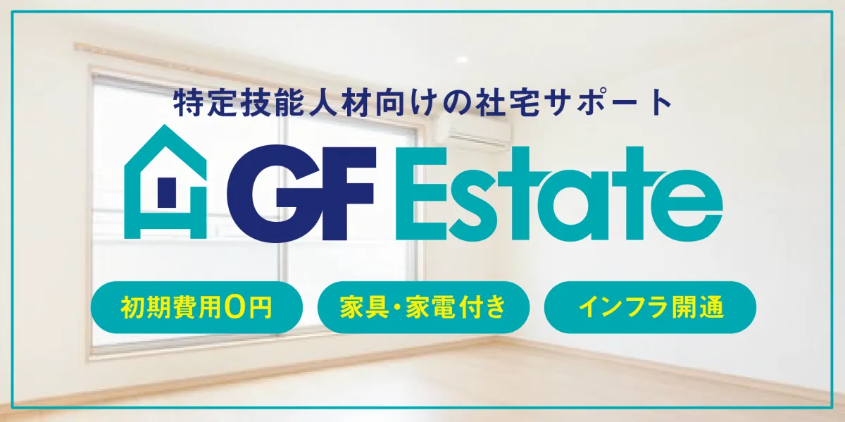 『GF Estate』は、外国人材の新生活を支えるためのサービスです。特に、住宅確保に関する課題を解決するため、企業が初期費用をかけることなく社宅制度を導入できるように設計されています。このサービスの導入により、企業の人事および管理部門の負担が軽減され、外国人材が安心して日本での生活をスタートできる環境が整います。