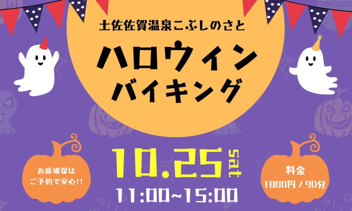 高知県黒潮町に位置する「土佐佐賀温泉 こぶしのさと」にて、2025年10月25日(土)に「ハロウィンバイキング」イベントが開催されます。この特別イベントでは、全10種類のおかずやご飯、スイーツが食べ放題で楽しめます。家族全員がハロウィンの雰囲気を堪能できる盛りだくさんの内容です。