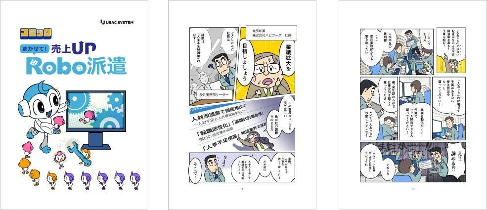 コミック Robo派遣」です。このマンガでは、自社の業績向上を目指す企業に向けたRPA(ロボティック・プロセス・オートメーション)の活用法が紹介されています。