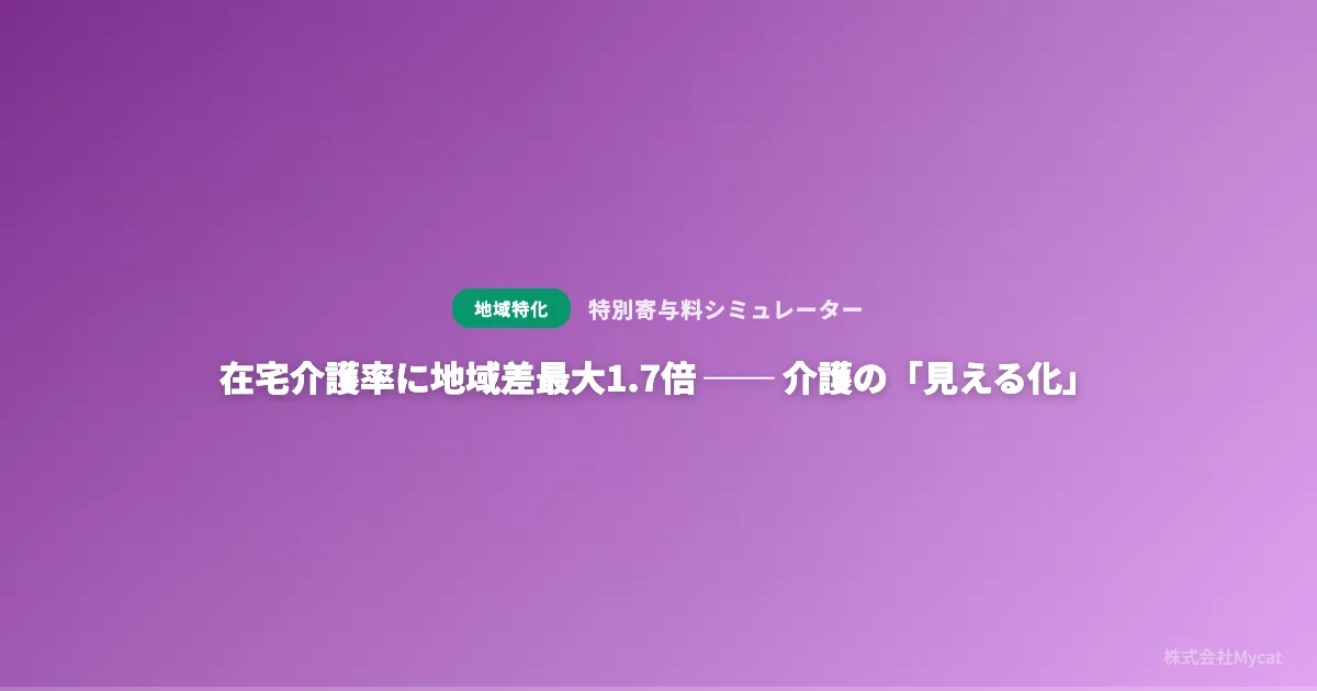 在宅介護は、要介護者に対して提供される重要なサービスですが、実は地域によってその利用率に大きなバラつきがあります。最近、株式会社Mycatが運営する「特別寄与料シミュレーター」を活用し、介護保険事業状況報告に基づくデータ分析が行われました。その結果、在宅介護率が最も高い地域と最も低い地域では、約1.7倍もの差が生じていることが明らかになりました。
