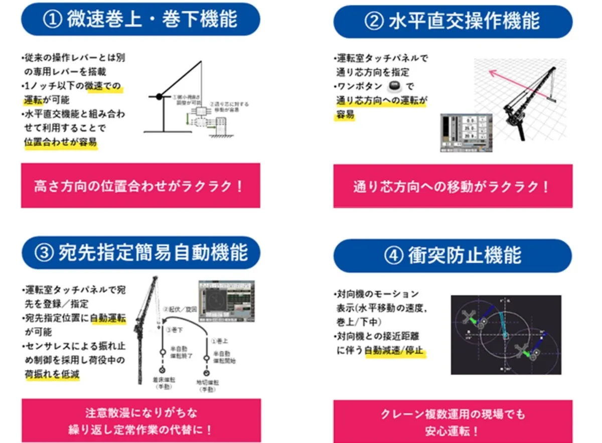 これらの機能により、非熟練者でも熟練者に劣らない操業が可能となり、安全で安定的な建設作業が実現します。現在、このシステムはJCCに標準搭載される予定であり、さらには造船業界や風力発電業界にも適用が期待されています。