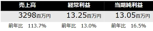 2024年度の売上高は、なんと3298百万円と過去最高を記録しました。前年比では113.7%の成長率で、当期純利益は13百万円に達しました。ただし、経常利益は13.2百万円と、予算にはやや届かない結果となりました。このように売上高が好調にもかかわらず、経常利益が計画を下回ったことにはいくつかの要因があります。
