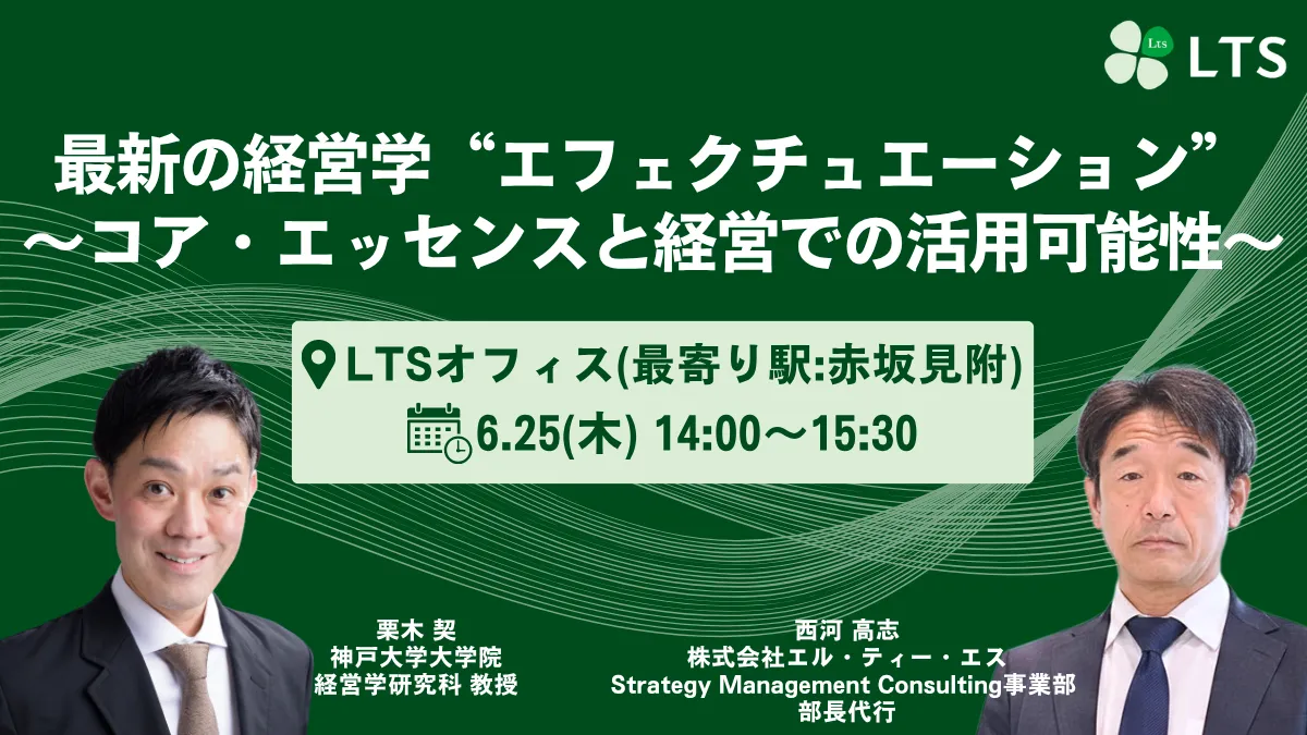 株式会社エル・ティー・エス(LTS)が、最新の経営学であるエフェクチュエーションに焦点を当てたセミナーを開催します。本セミナーは、6月25日(木)の午後2時からLTS本社オフィスにてリアル開催され、経営に役立つ枠組みや理論について深く学ぶ機会となります。