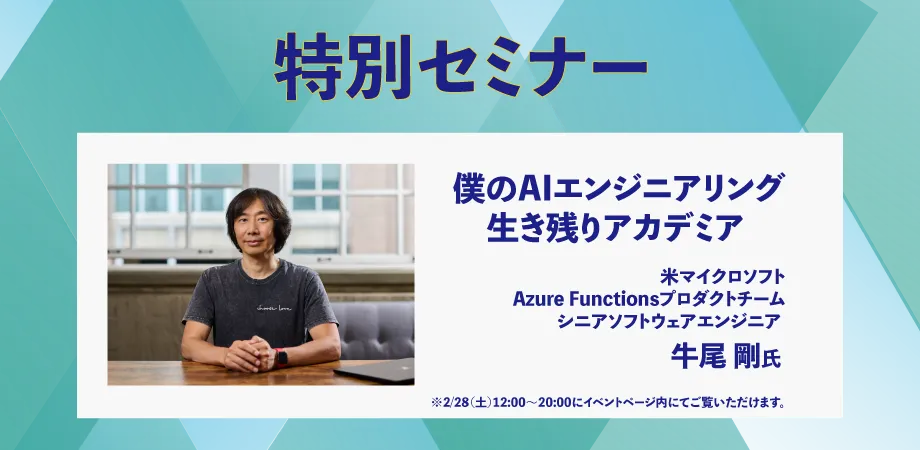 牛尾剛氏は、著書『世界一流エンジニアの思考法』で10万部以上の売上を記録した実績を持つ著名なエンジニアであり、現在は米マイクロソフトのAzure Functionsプロダクトチームにてシニアソフトウェアエンジニアとして活躍されています。