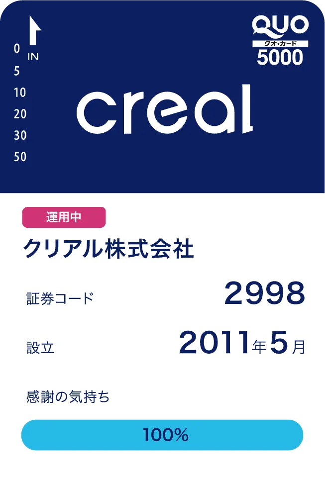 クリアル株式会社は、株主様への感謝の気持ちを込めて、特別なデザインのQUOカードを用意しました。この取り組みは、株主優待制度の導入に伴い、投資家とのつながりをより強固なものにする重要なステップとなります。これからも株主様への感謝を忘れず、事業を進めてまいります。今後の展開にもぜひご注目ください。