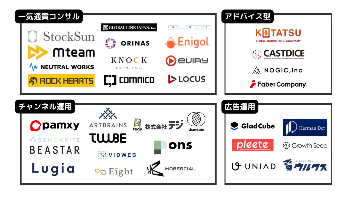 このような状況を踏まえ、StockSunはYouTube運用支援企業の全体像を把握しやすくするために、今回のカオスマップを作成しました。このカオスマップを利用することで、企業は自分たちのニーズに適したパートナーを容易に選定できるようになります。