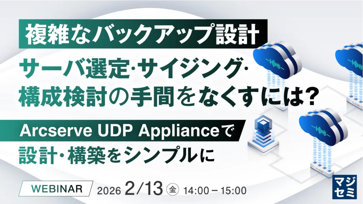 このウェビナーでは、Arcserve UDP Applianceを例にとり、バックアップ設計が複雑化する原因を明確にし、特に重要な「サーバ選定」「サイジング」「構成検討」に関してはどのように標準化できるのかを掘り下げます。