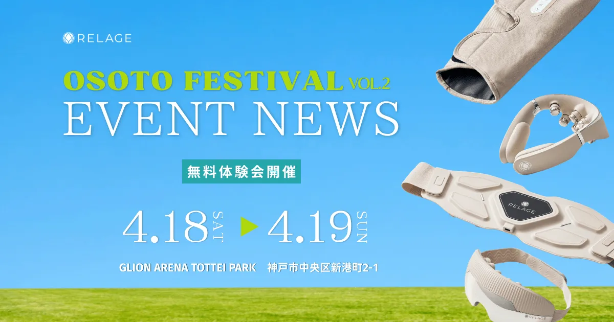 2026年4月18日と19日の2日間、兵庫県神戸市のTOTTEI PARKにて、アウトドアイベント「OSOTO FESTIVAL vol.2」が開催されます。このイベントに、ウェルネスケアブランド「RELAGE(リラージュ)」が出展し、参加者に特別な体験を提供します。