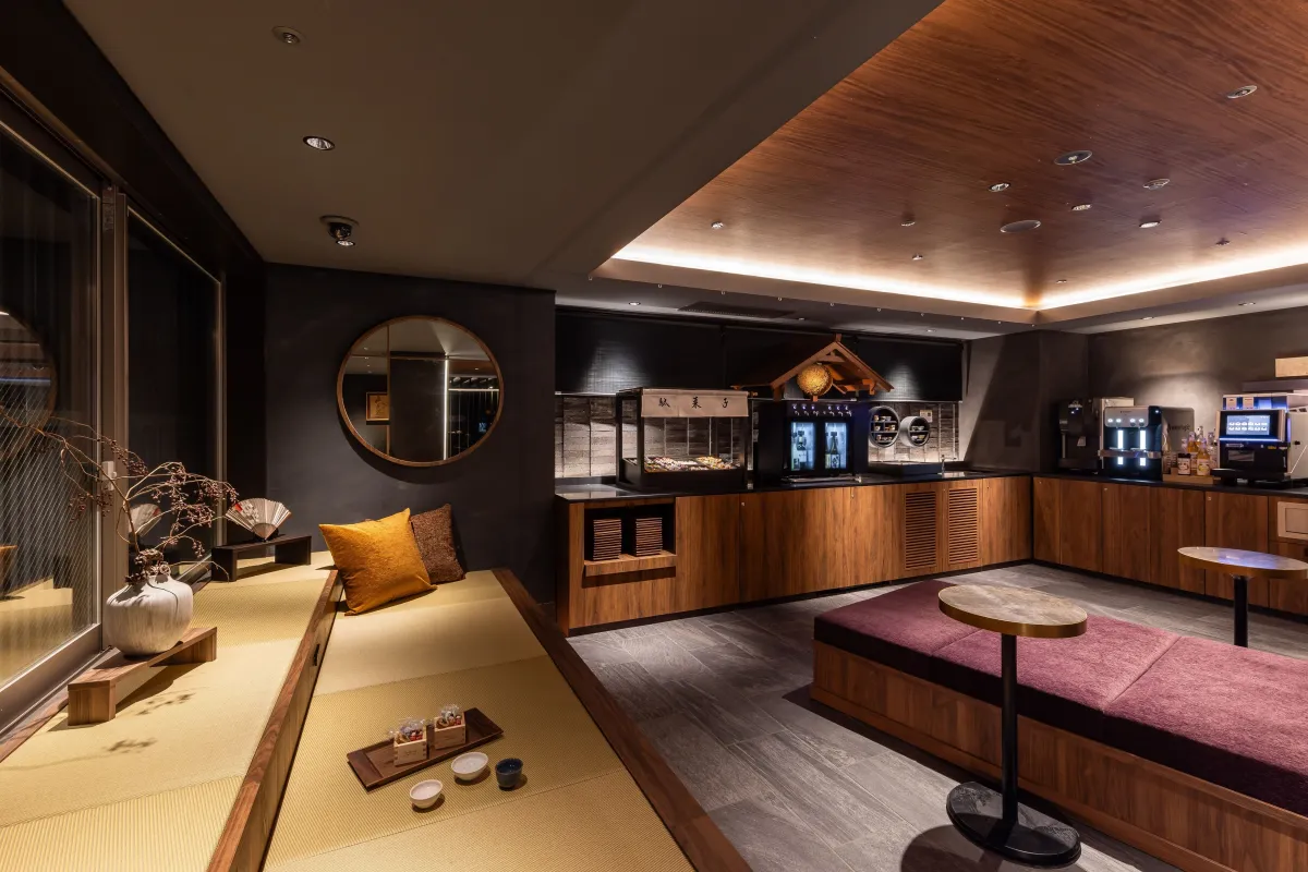 『HANARE by Tokyu Stay』の中でも、ラウンジ「らうんじはなれ」は特別な空間です。ここでは、京の風情が感じられるインテリアとやわらかな照明が訪れる人々を包み込みます。家族やカップルが共にくつろぎながら、駄菓子を楽しみ、地元の銘酒を味わいながら心温まる交流ができる場が提供されます。