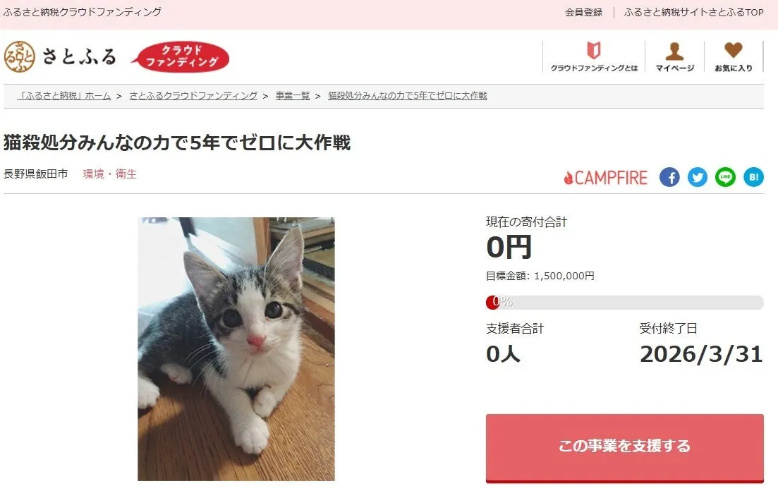 長野県飯田市とふるさと納税ポータルサイト「さとふる」を運営する株式会社さとふるは、2025年8月1日から「猫殺処分みんなの力で5年でゼロに大作戦」の寄付を募ります。このプロジェクトは、猫の殺処分を減少させることを目的としており、今回は4回目の取り組みとなります。