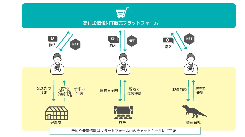 この高付加価値NFTプラットフォームは、単なる商品販売にとどまらず、地域固有の資源をプレミアムな体験に変えることで、ファンを増やし、新たな収益を生み出すことを狙っています。そしてこの収益を地域の公共サービスの向上や、コミュニティの再生に活用する考えです。