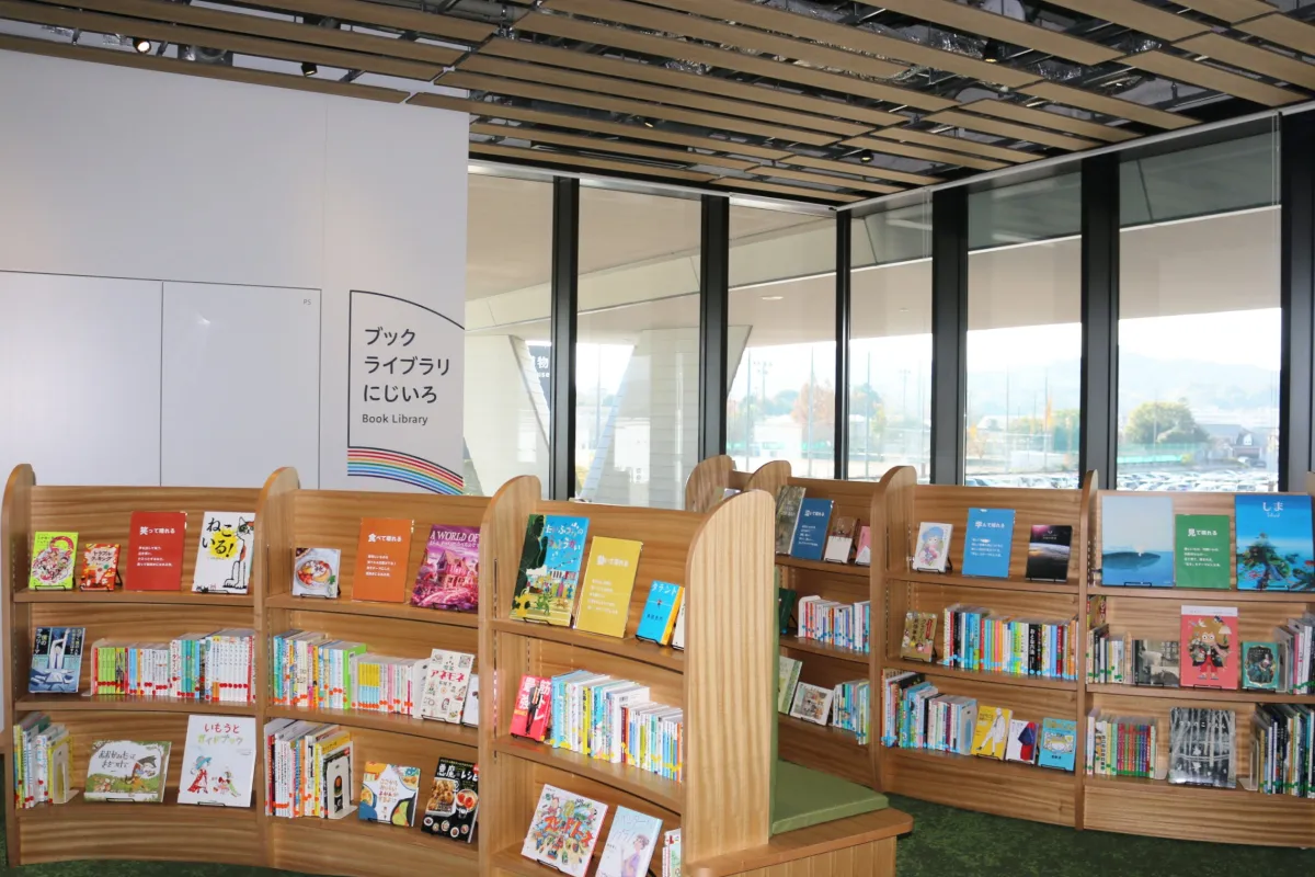 このライブラリのコンセプトは、「自然に溶け込む『大屋根』のもとにみんなが集う環境共生庁舎」。特に、雨上がりにかかる虹からインスパイアを受けたデザインが印象的で、訪れる人々が晴れやかな気持ちになることを意識しています。ライブラリ内には、7つのジャンルが用意され、それぞれのテーマが「晴れる」ことを中心に展開されています。具体的には「笑って晴れる」「食べて晴れる」「動いて晴れる」「見て晴れる」「学んで晴れる」「泣いて晴れる」「休んで晴れる」といったテーマがあります。