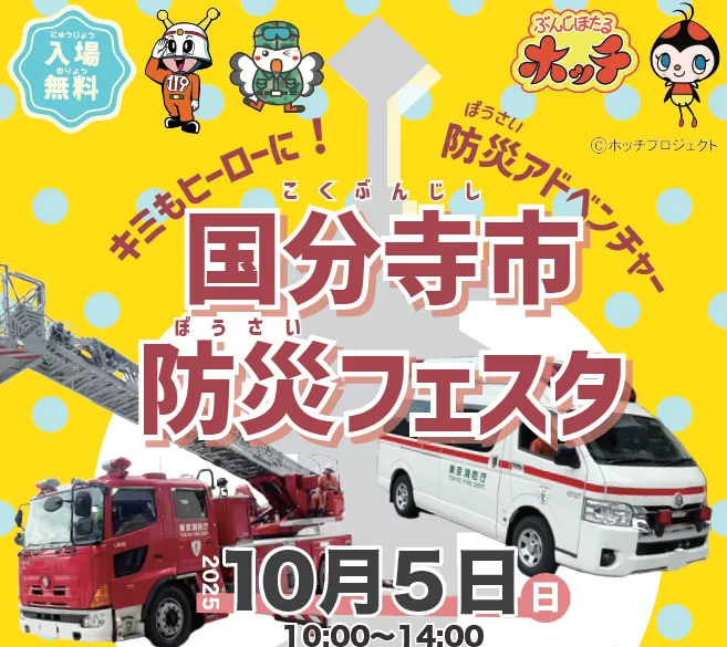 国分寺市では、2023年10月5日(日曜日)に「防災フェスタ」を開催します。このフェスタは、災害時における自助と共助の力を高めることを目的としており、幅広い年齢層の方々が楽しみながら防災について学ぶことができる企画が盛りだくさん。現地にお越しになる皆さんをお待ちしています!