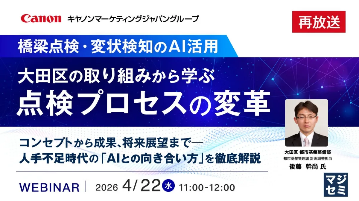 このウェビナーは、橋梁点検やインフラ保守に関心のある建設コンサルタント、ゼネコン、自治体職員などにとって、特に価値ある内容です。新しい技術を活用した業務改革のヒントを見つけることができるでしょう。