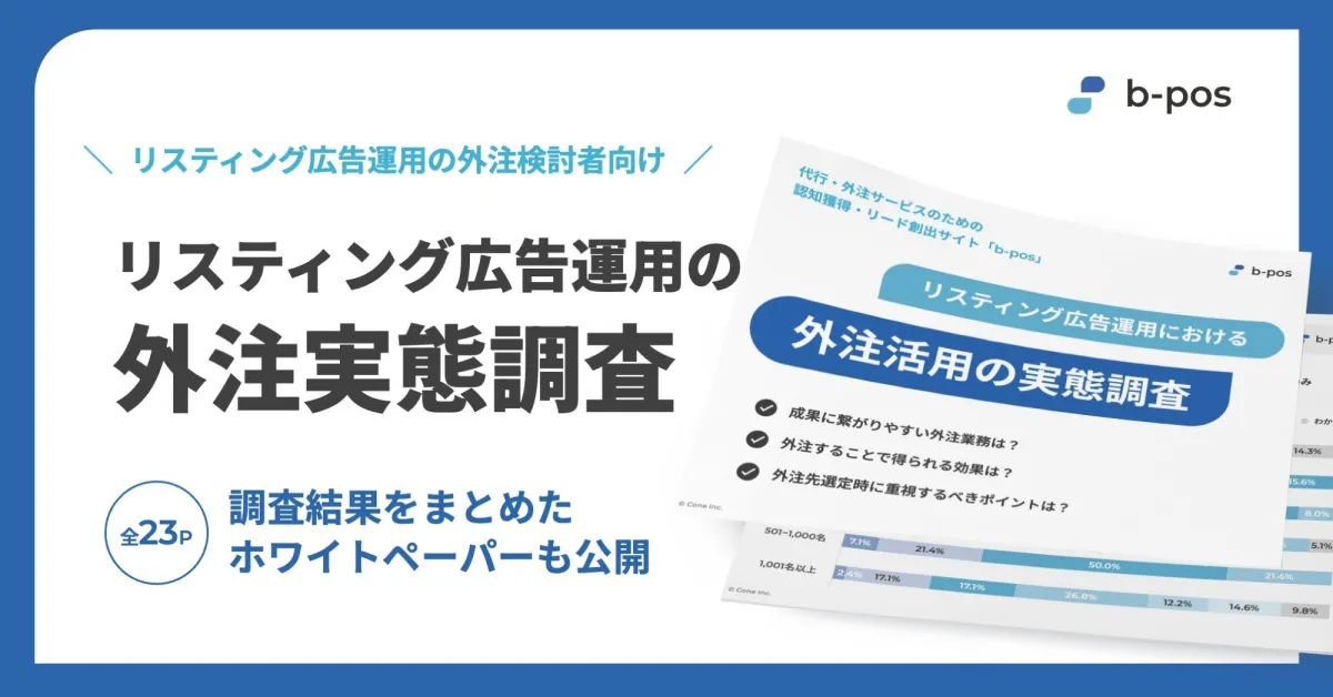株式会社Coneが運営するBPOサービス比較サイト「b-pos」は、企業におけるリスティング広告の外注活用に関する調査を行い、その結果をホワイトペーパーとして発表しました。リスティング広告は、デジタルマーケティングの重要な手段として多くの企業に利用されていますが、その運用には専門的な知識が要求されるため、外注を考える企業が増加しています。