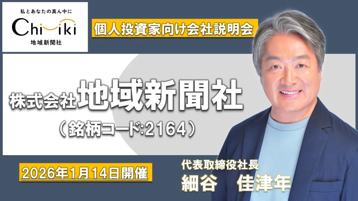 2026年1月14日、千葉県八千代市の株式会社地域新聞社が主催する「個人投資家向けオンライン会社説明会」が行われました。このイベントは、その名の通り、個人投資家を対象として、地域新聞社の新たなビジネス戦略や成長計画を発表するものでした。
