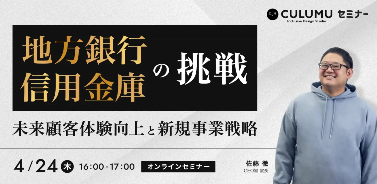 CULUMUは様々なユーザーと共創することに特化したインクルーシブデザインスタジオで、金融業界に限らず多様な事業開発を支援しています。高齢者や障がい者、外国人など、多様なニーズに対応したデザインソリューションを提供し、過去100件以上の取引実績があります。