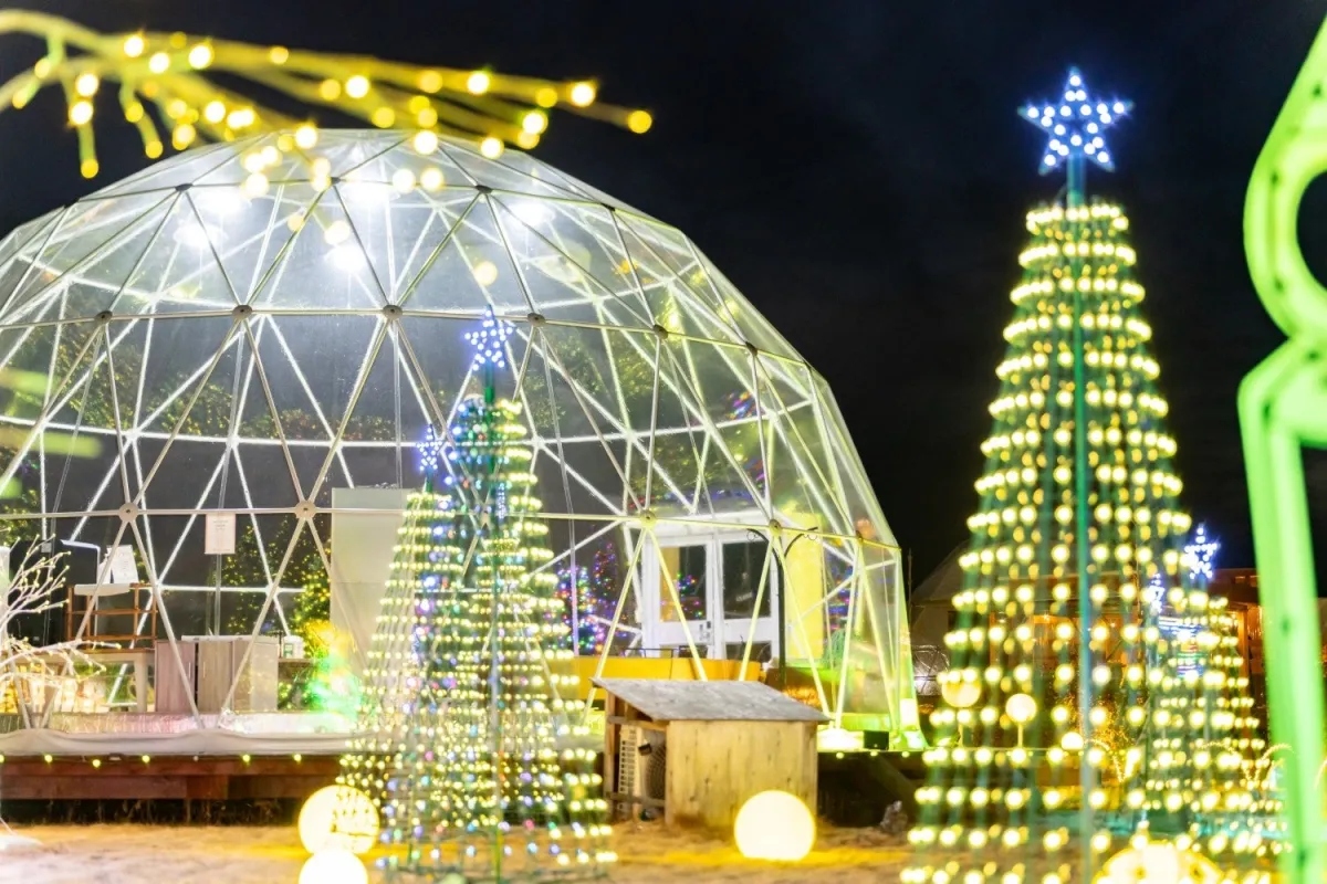 「ミュージック・ライト・ショー」は、広大なセンターガーデンに設置された6棟のドーム型グランピング施設で開催されます。美しい景観の中で、音と光のハーモニーが織りなす特別な夜を楽しむことができます。また、初回開催となる10月のイベントではハロウィンをテーマにしたイルミネーションが展開され、季節感溢れる幻想的なシーンが広がります。