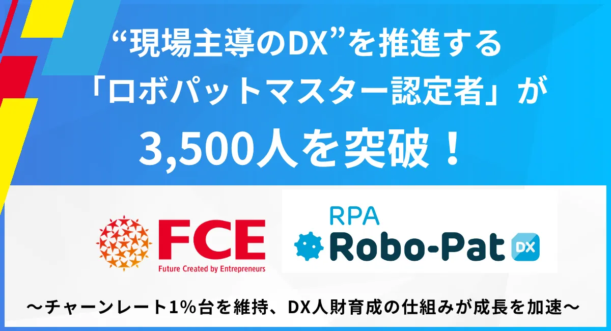 株式会社FCEが提供する純国産RPAツール「RPAロボパットDX」は、業務のデジタルトランスフォーメーション(DX)を担う人材を育成する「ロボパットマスター認定プログラム」の認定者数がついに3,500人を突破したことを発表しました。これは、RPA(ロボティック・プロセス・オートメーション)を活用し、企業の業務改善を推進するリーダーたちがこのプログラムを通じて育っていることを意味します。