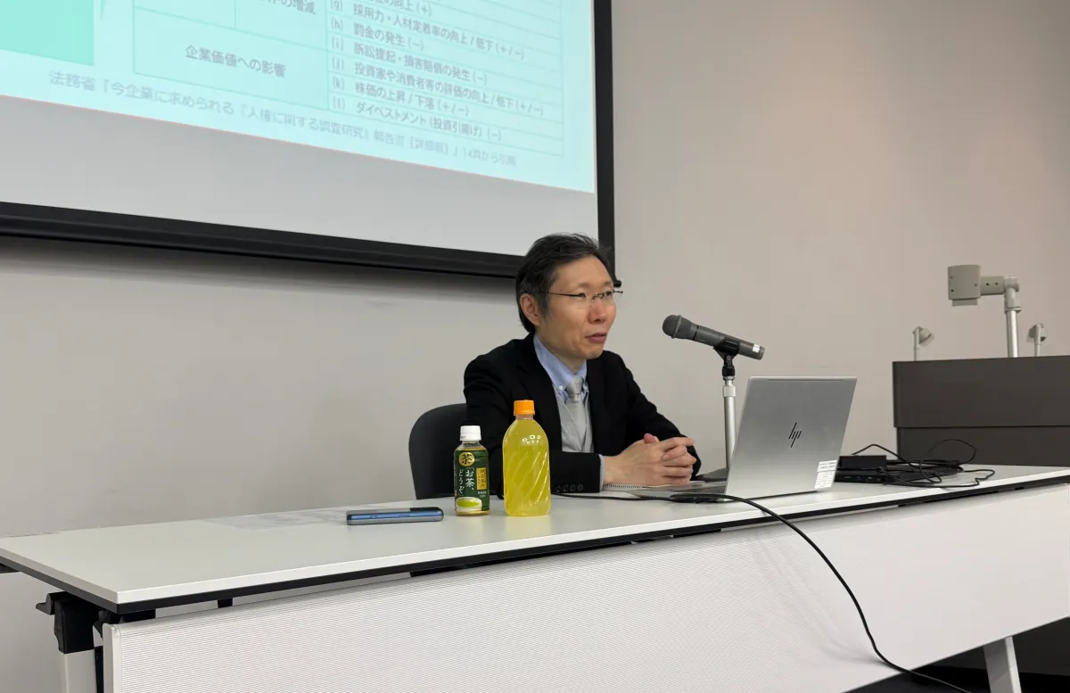 講師として招かれたのは、蔵元国際法律事務所の代表弁護士である蔵元左近氏。彼は業界の抱える具体的な問題や解決策について詳述し、人権を尊重することで生産性が向上し、企業の成長にも寄与するという多面的な利点を指摘しました。特に、経営層の関与や部門間での協力体制の構築が、実効性の高い取り組みとして紹介されました。