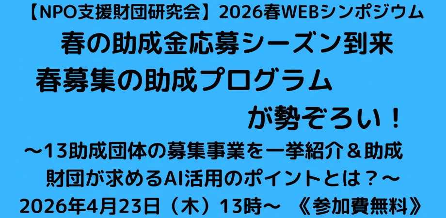 春は多くの助成財団が助成金を募集する時期であり、NPOにとって最適の助成プログラムを見つける重要な時期です。このシンポジウムでは、助成財団からの期待や狙いをしっかりと伝え、NPOの参加者がより良い企画を提案できるようサポートします。また、最近ではAI技術の活用が注目されており、助成金申請におけるAIの活用方法についても議論されます。