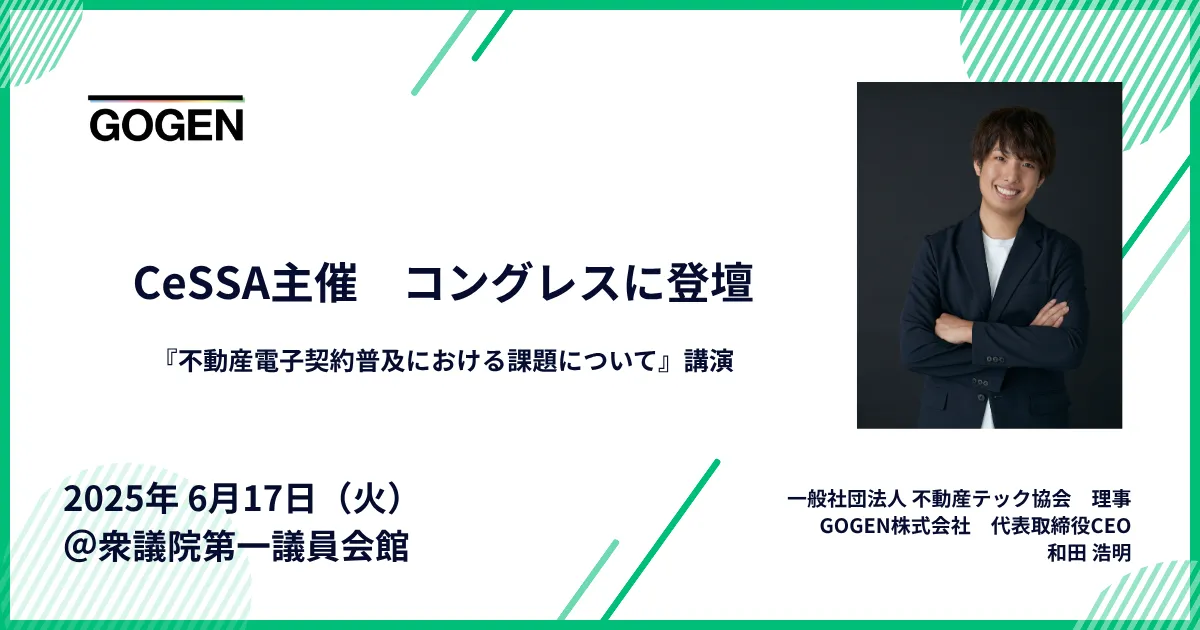 不動産業界のデジタル化が進む中、2025年6月17日、衆議院第一議員会館で開催された「CeSSAコングレス2025」に、GOGEN株式会社の代表取締役CEOであり、不動産テック協会の理事でもある和田浩明が登壇しました。このイベントでは、国土交通省や不動産テック協会が招かれ、業界の未来を探る貴重な機会となりました。