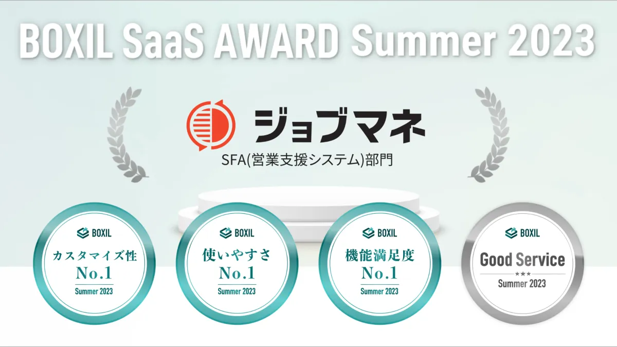 最近、業務管理ツール「ジョブマネ」が、著名なSaaS評価サイト「BOXIL SaaS」のアワードにて複数の部門で受賞を果たしました。特に注目すべきは、営業支援システム(SFA)部門での「Good Service」受賞、さらに「機能満足度No.1」、「使いやすさNo.1」、「カスタマイズ性No.1」の3部門においても1位を獲得したことです。