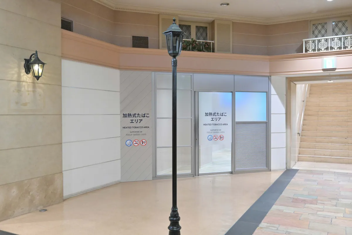 設置した施設は、2か所で、どちらも2025年5月15日から利用可能になります。1つ目は、B1Fに位置する加熱式たばこ専用室です。広さは約15㎡で、機器としてはLCDモニターが設置されています。2つ目は、2Fにある加熱式たばこと紙巻たばこ専用の併設型喫煙室で、広さは約47㎡です。こちらも同様にLCDモニターが装備されており、紙巻たばこ喫煙室には喫煙脱臭機が2台設置されています。