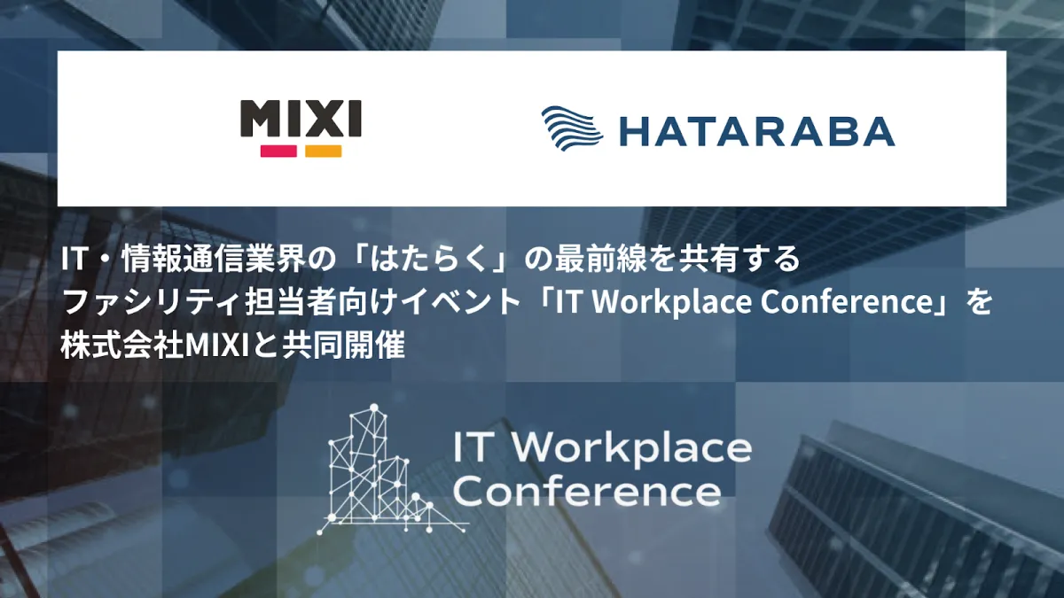 株式会社HATARABAが主催、株式会社MIXIと共同で開催する「IT Workplace Conference」が2026年2月20日に東京都渋谷区で開催されます。このイベントは、IT・情報通信業界で働くファシリティ・総務担当者を対象としたもので、業界のワークプレイス戦略に関する最新の情報を提供することを目的としています。