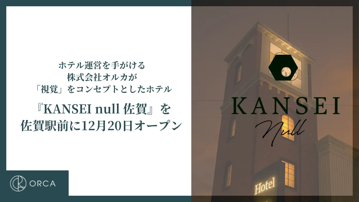 株式会社オルカは、13月、視覚をテーマにした無人ホテル「KANSEI null 佐賀」を佐賀駅前に開業することを発表しました。このホテルは、宿泊者の「Wellbeing」を大切にし、特別な時間を提供することを目指しています。