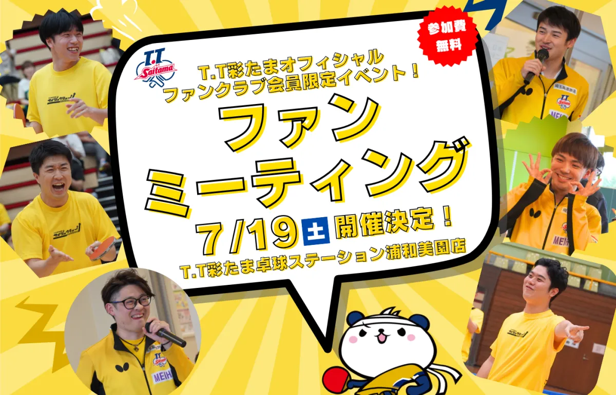 この機会にぜひ、ファン同士での楽しい交流を深め、T.T彩たまの選手たちとの思い出を作りましょう!ファンミーティングでお待ちしています!