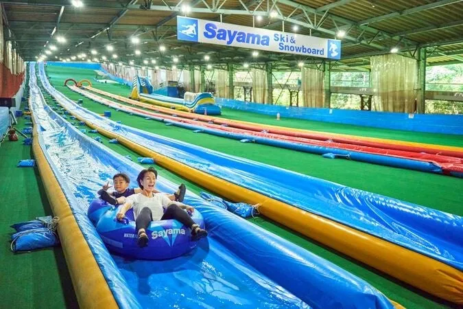 狭山スキー場は、冬季にはスキースポットとして知られていますが、夏の「ウォーターフェス」では、3種類のウォータースライダーなど、多彩なアクティビティが楽しめます。2026年は、4月25日から9月27日までの開催で、雨の日でも安心して遊べる多様なエリアが用意されています。