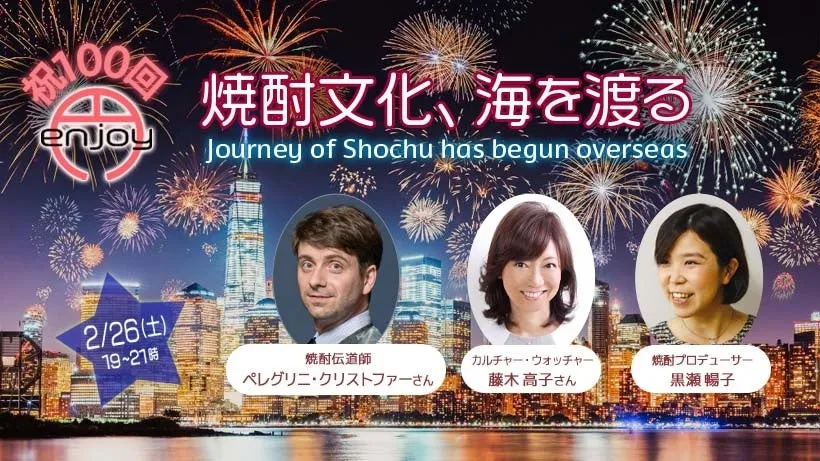 100回記念の特別なイベントは、2022年2月26日(土)に開催されます。この日のために招かれたのは、アメリカで独自の方法で焼酎を広める「HONKAKU」創設者のペレグリニ・クリストファー氏と、カルチャーウォッチャーの藤木高子氏です。彼らは日本の焼酎文化をアメリカでどう伝えているのか、その視点をシェアしてくれるとのことです。彼らの国際的な知見を通じて、焼酎が文化を超えて広がる様子が伺えるのがとても楽しみです。