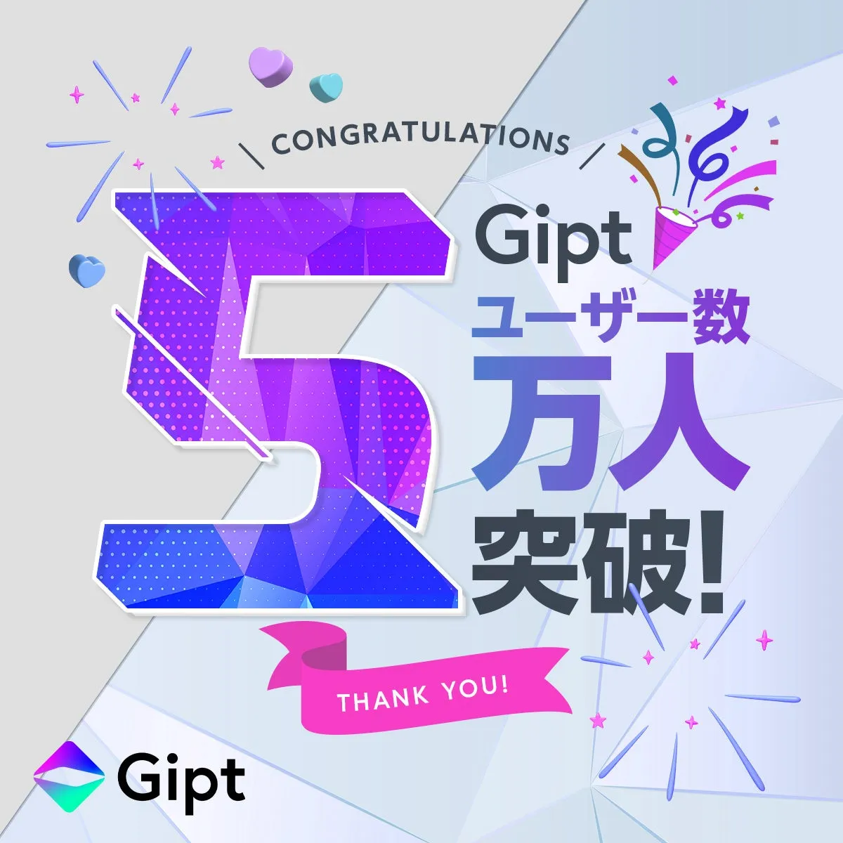Gipt(ジプト)が登録ユーザー5万人達成