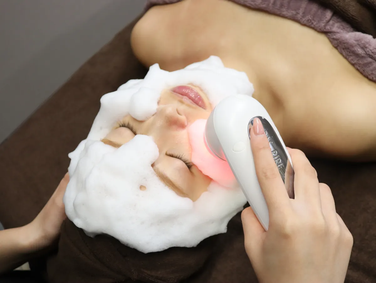 具体的には、「高濃度コラーゲン泡」、「特殊電流美顔器」、「筋膜リリース」という三つの技術を組み合わせ、顔だけでなく、首やデコルテ、肩甲骨までがしっかりとケアされます。特に注目すべきは、韓国美容における最新技術を取り入れている点です。例えば、10%のコラーゲンを含む高濃度の泡美容液は、真皮層まで浸透し、肌にハリと弾力を与えます。