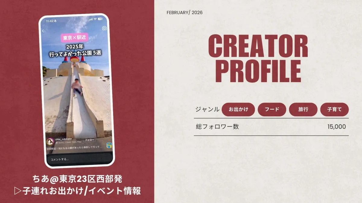 最近、株式会社ベクトルが運営する「ショート動画取材班」に新たな仲間が参加しました。それが「ちあ@東京23区西部発▷子連れお出かけ/イベント情報」です。このメディアは、東京都の西部地区を中心に、子ども連れの家族が楽しめる様々なお出かけスポットやイベント情報を動画で発信しています。