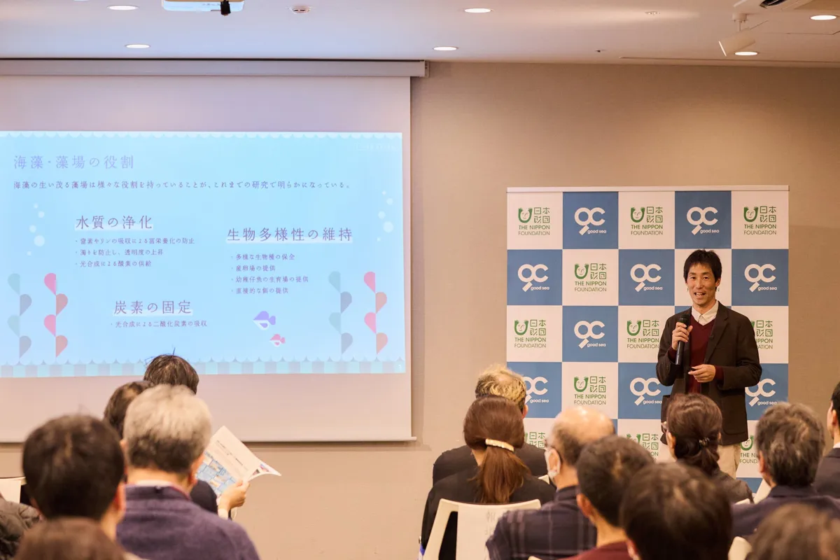 グッドシーは2023年に設立された団体であり、海藻を中心とした海洋生態系の保護と活用を目的としています。特に公益財団法人日本財団の支援を受け、海藻類を含む海洋生態系の調査を行っています。この日のイベントでは、海藻養殖が海の生態系の回復に貢献する可能性について、定量的なデータに基づく報告が行われました。