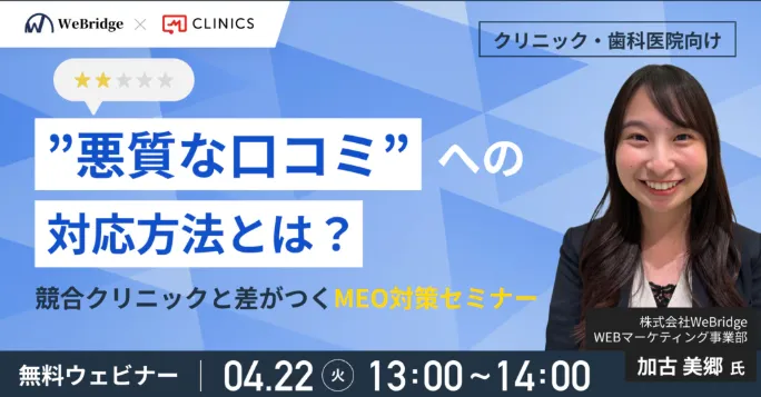 クリニックの運営には欠かせない集患対策。その中でも、Googleマップの活用が近年注目されています。特に、口コミの影響力を軽視するわけにはいきません。悪質な口コミに悩むクリニックが多い中、今回のウェビナーでは効果的な対応策が紹介されます。