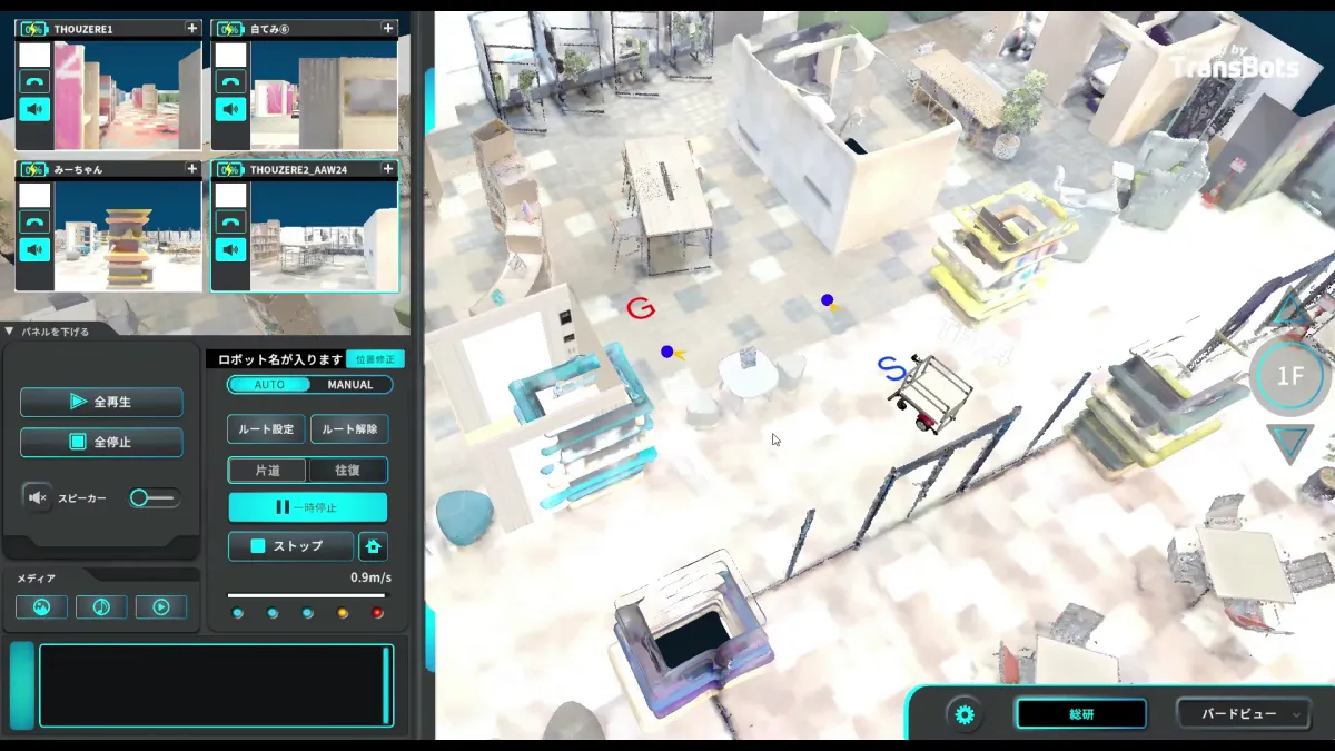 - 「TransBots®」は、TOPPANが長年にわたって研究開発してきた3次元計測技術とVR技術を融合させたデジタルツインソリューションです。これにより、仮想空間上でロボットの導入シミュレーションや管理が直感的に行えることが特徴です。情報の提示や外部サービスとの連携も可能で、業務の効率化を支援します。