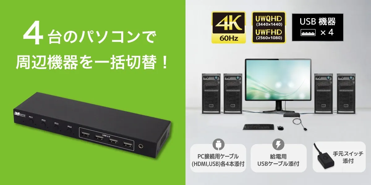 大阪に本社を構えるラトックシステム株式会社が、パソコンを4台接続して周辺機器を一括で操作できる「4K60Hz対応HDMIパソコン切替器」を2025年2月中旬に発売します。この製品は、特に多彩な作業環境を構築することを求めるプロフェッショナルやプログラマーにとって、便利さを提供することでしょう。
