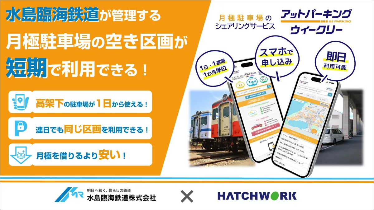 2025年5月1日から、岡山県倉敷市を中心に運営される水島臨海鉄道の月極駐車場で、新たなシェアリングサービス「アットパーキングウィークリー」の提供が開始されます。この取り組みは、株式会社ハッチ・ワークによるもので、既存の月極契約に加え、短期の駐車利用ができる柔軟なサービスを提供します。
