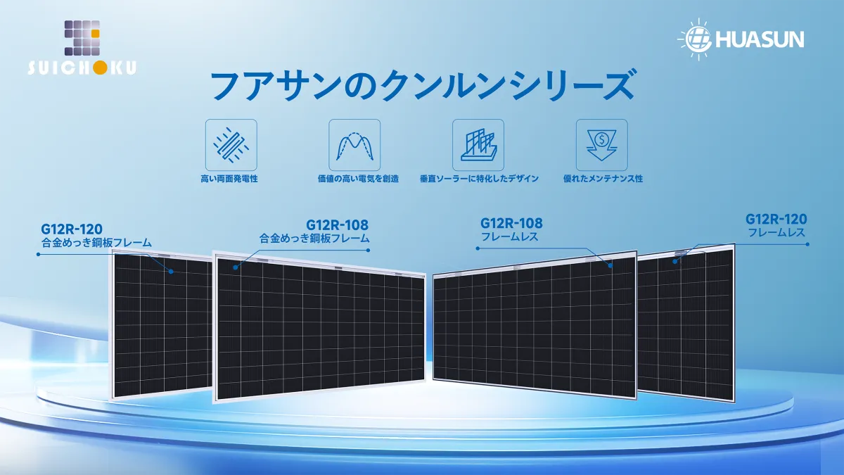 スイチョクは、Next2Sunの技術を背景に持つ唯一の日本法人であり、再生可能エネルギーの分野で革新を推進しています。フアサンとのパートナーシップにより、日本国内での売上アップと持続可能な社会の実現を目指します。また、今回の契約には、スイチョクとフアサンが共同開発した4つの新しいモジュールタイプも含まれており、具体的にはHSN-210R-B108DNV、HSN-210R-B108DSV、HSN-210R-B120DNV、HSN-210R-B108DSVがラインナップされます。これらのモジュールは、特に技術的優位性を持ち、農業とエネルギー生産の共生を可能にします。