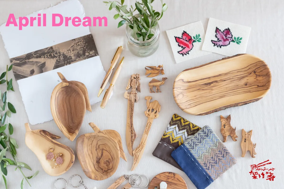 「素敵に国境はない」をビジョンに掲げ、私たち架け箸はパレスチナのフェアトレード製品に特化した活動を行っています。4月1日を「夢を発信する日」とし、私たちの取組に賛同していただくことで、多くの人々にこの魅力を伝えたいと考えています。