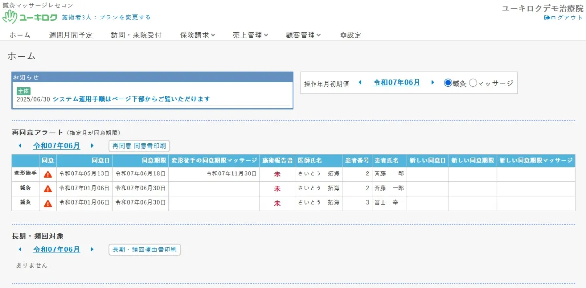 「ユーキロク」は、施術スタイルや経営形態に応じてその機能を自在にカスタマイズします。訪問専門や店舗型、さらにはその両方を組み合わせた形でもスムーズに運用可能です。保険のみの施術、保険と自費のハイブリッド、または自費中心の治療まで、それぞれのニーズに対応しています。