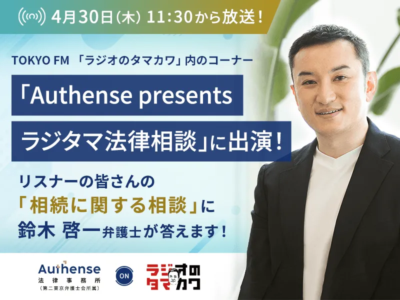 2026年4月30日、TOKYO FMで放送される「ラジオのタマカワ」内で、Authense法律事務所の弁護士が相続に特化した法律相談コーナーを展開します。この企画は、リスナーの皆様の「相続に関する相談」に対し、専門家が親しみやすく回答することを目的としています。