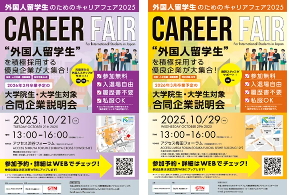 2025年10月、東京と大阪で「外国人留学生のためのキャリアフェア2025」が開催される。このイベントは、外国人留学生が日本での就職活動を円滑に行えるよう支援することを目的としています。主催するのは、株式会社アクセスネクステージ、株式会社学生情報センター(ナジック)、株式会社グローバルトラストネットワークスの3社です。