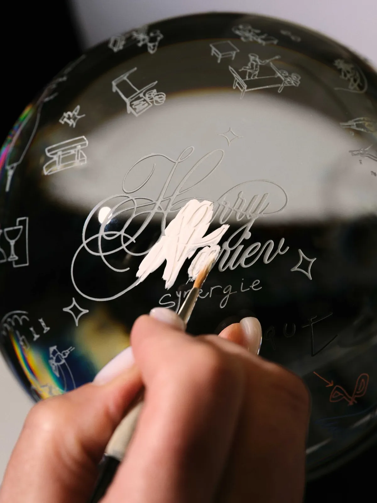 このコレクションは、伝統的な職人技術を駆使しながらも、現代的な表現を取り入れたものとなっています。バカラの金彩工房では、熟練の職人たちがヌリエフのビジョンを形にするために、精緻なサンドブラスト技術や手彩色のエナメルを用いています。彼が選んだテーマには、「賞賛」「今この瞬間を楽しむ」「祝祭」「魅力」といった言葉が盛り込まれ、バカラの豊かな世界観を象徴するモチーフやジェスチャーがクリスタルに刻まれています。